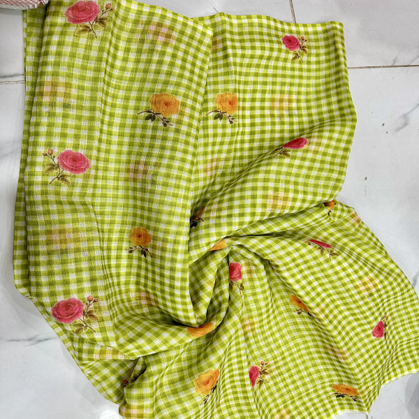 Vintage Linen Checks saree-VLCH05